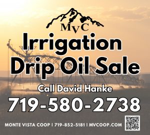 - Irrigation Drip Oil Sale March 1 – 31. Call David Hanke to order 719-580-2738.
